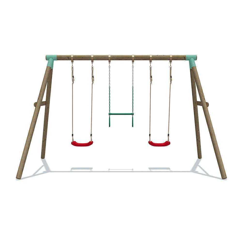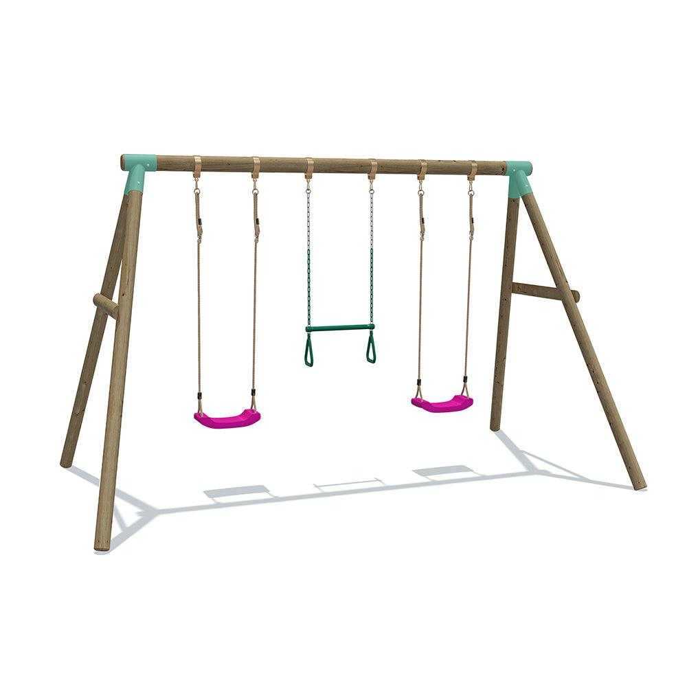 This excellent Australian-designed triple swing set is available in six beautiful seat colours. It’s an incredibly popular model within our Wild Aussie range and is truly a backyard “must-have” for your outdoor living space. This wooden swing set includes metal trapeze bars with hang-tough rings and two single swing seats. The durable hanging swings feature strong ropes that connect to our solid, galvanised brackets and are fully height-adjustable.